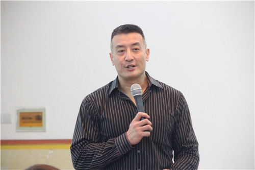 本次讲座的主题为“Simultaneous Interpreter Demystified”。费杰教授采用全英文讲述的方式,依次从三个方面展开本次讲座。首先,他从自己在同声传译行业的工作经历入手,讲述了同传等翻译行业的发展,并灵活地借用了最近热播的电视剧《翻译官》进行说明。费教授说:“翻译是一份需要实力的工作,要静心,要打实基础。在校老员工要努力提高自己的英语能力,脚踏实地,在一点一滴的进步中不断自我完善。”其次,他讲述了自己的学习经验。他提出,词汇的重要性不言自明,但要做好同声传译,更要注意自己其他方面知识的积累,同时,英语语法的重要性也不容忽视,希望同学们在语法的学习上多下工夫。最后,他向同学们介绍了一些同传学习的方法,并与其一起前往同声传译教室做“实战练习”,更加深入地讲解同声传译所需的技巧与能力。