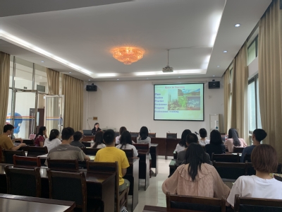 唐斌经理详细介绍了公司发展历程、教学设施以及公司办学历史、团队力量和专业课程特色,希望同学们加强学术涵养、提高文化担当,把握机会,争做优秀的“语言服务者”。