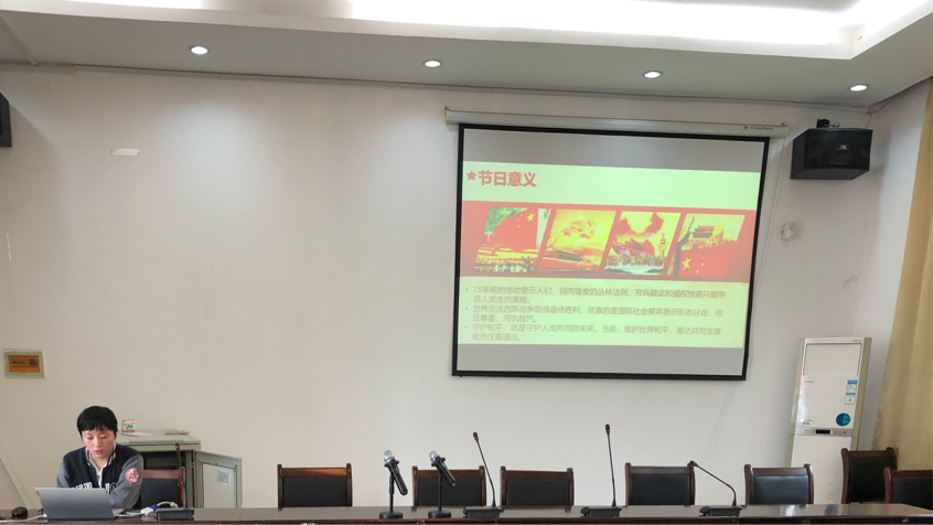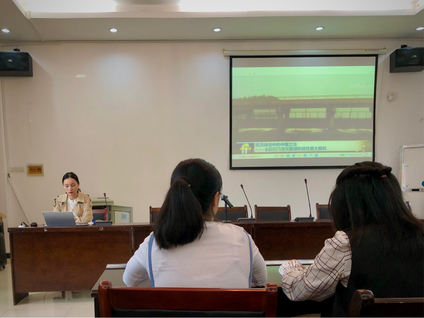为了深入学习习近平总书记系列重要讲话精神,弘扬抗疫精神、抗洪精神和抗战精神,9月18日BB贝博艾弗森研究生辅导员钱淑群老师组织“开学第一课——抗疫、抗洪、抗战”主题班会,2019级、2020级翻译硕士研究生参加。