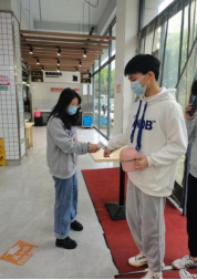 我负责在食堂门口值班,测量体温并引导大家从正确的进出口通行。在做志愿者之前,我觉得这些工作似乎没有很辛苦,等到真的做这些事情以后,发现单单是站两个小时就已经很累了,更不用说还冒着寒冷和危险。但是作为一名研究生,能为大家的安全贡献自己的青春力量,是一件很有意义和价值的事情。