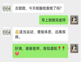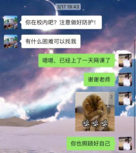 封校管理虽使得师生间无法面对面交流,但导师的关怀依然通过网络传递到了每一位学子的心中。尤其对于身处异乡的学子,在收到老师问候的瞬间,再次感受到了家人般的温情。疫情短暂地在校园布满了乌云,但温暖的人情终将驱散寒冷与阴霾。
