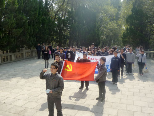 上午9点,一行人步行至方志敏烈士陵园。大家在党旗的引领下,进行了庄严的献花圈仪式,并在烈士墓前默哀三分钟。随后,员工党员代表徐敦鹏代表全体党员发表宣言,他呼吁全体党员要向方志敏烈士学习艰苦奋斗,不怕献身的精神,肩负起自己的使命。在庄严肃穆的气氛中,全体成员进行了党员宣誓仪式。