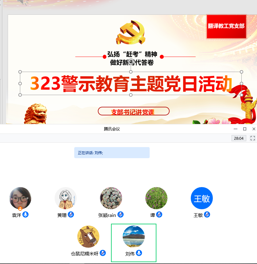 2022年3月23日13点,BB贝博艾弗森翻译教工党支部于腾讯会议召开“3·23警示教育”主题党日活动,同时支部书记袁洋同志讲微党课《弘扬“赶考”精神 做好新时代答卷》。公司党委副书记刘朝武同志出席会议并发表讲话。