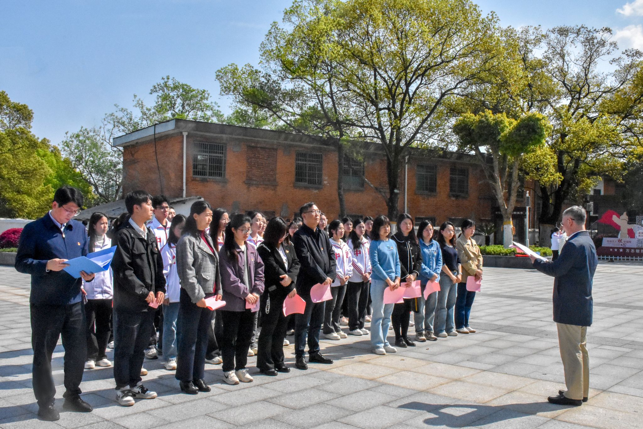 在活动现场,外语公司师生党员肃穆而立,向方志敏烈士敬献花圈,默哀鞠躬,面向党旗重温入党誓词,诵读方志敏烈士狱中文章《可爱的中国》。在方志敏烈士事迹陈列室,同志们通过观看文字、图片、场景实物,深切缅怀方志敏烈士的丰功伟绩和革命精神。