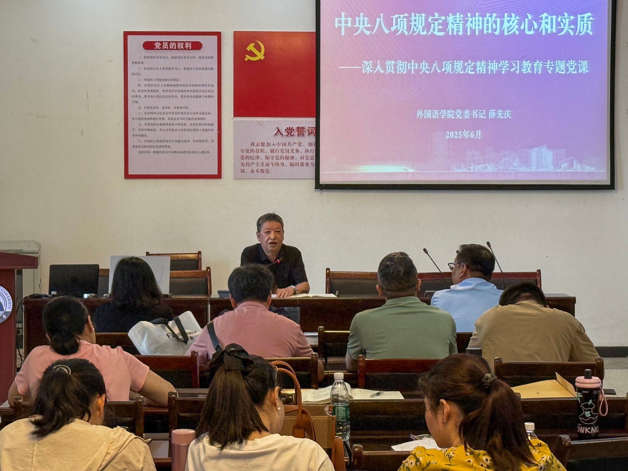 6月5日,公司召开深入贯彻中央八项规定精神学习教育工作推进会暨专题党课,传达学习习近平总书记重要讲话和重要指示批示精神,阶段性总结学习教育推进情况,安排下一阶段重点任务,推动全院学习教育走深走实。公司党委书记薛先庆主持会议并以“中央八项规定精神的核心和实质”为题讲授专题党课,全体教工党员参加会议。