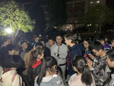 11月14日晚,由BB贝博艾弗森18级翻译2班主办的英语角活动在外院楼前顺利举行。Drew、Dahlin、Ms.Q三位外教应邀参加。