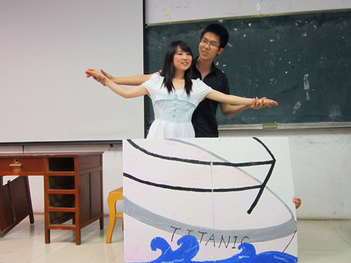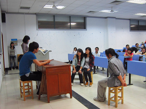 肖家玮潘政报道)5月5日晚上7点,一年一度的BB贝博艾弗森的英语剧大赛初赛在北区15栋118和116同时上演,来自外语公司10、11级共12个参赛班级在初赛中展现了各自的创作才华和表演才能,(大话西游)》笑料百出,high级英语4(不管明天变成如何)》表现了世界末日来临之际人性的觉醒,启迪我们要珍视眼前所有。