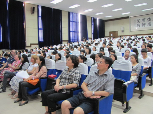 在讲座的尾声,一些奋战在教学一线的老师们也提出了一些自己的问题。针对如何能够更好地强化同学们对词汇的理解与运用这一问题,邹科表示,应该让员工多写多练,在实际的演练中加强员工的好词好句运用能力。除此之外,他认为多查字典也是作为一个外语学习者所必须具备的好习惯。讲座最后在一片掌声中落下了帷幕。