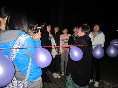 本次活动主题为Safe,活动内容为外教与同学之间相互用英语交流。活动期间组织者播放了优美的音乐,为活动营造了良好氛围,各个外教与同学们都讨论 的热火朝天。外教Patty极具亲和力,交流时生动的语言,丰富的表情,滑稽的动作吸引了很多同学与她交流。现场气氛十分活跃,同学们大胆地用英语表达自己的观点看法,外教也热情地与他们交流。