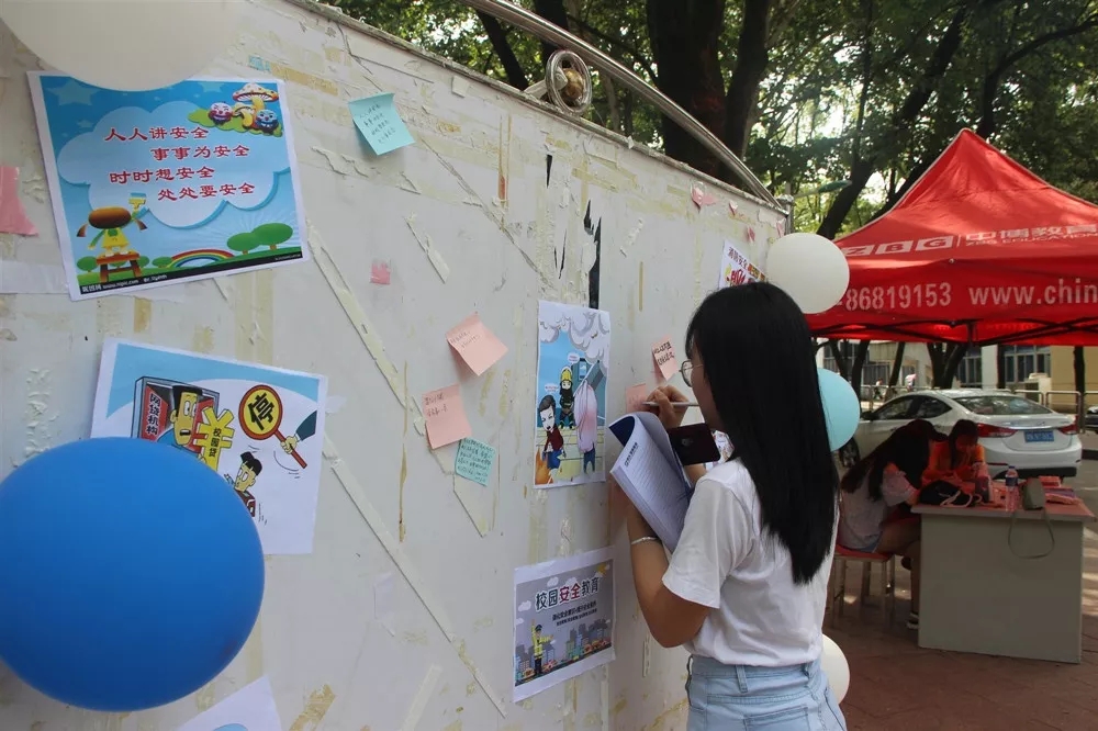 据悉,本次活动以有奖回答、趣味游戏等形式向同学们普及有关实验安全、防溺水安全、消防安全、交通安全、食品卫生等各方面的知识。同时,在活动开展期间,自律部的成员还通过在校园内粘贴标语、制作展板的方式,来提高同学们在生活中各方面的安全防范意识。除此之外,他们还开展了心理健康的线上和咨询台和心理健康知识投稿处,充分的将安全生产宣传内容与素质化媒体平台进行融合,积极有效的扩大了本次活动的覆盖力和影响力。活动现场,被吸引前来的老师和同学们络绎不绝,工作人员也十分耐心的一一回答他们的问题,整个过程井然有序。