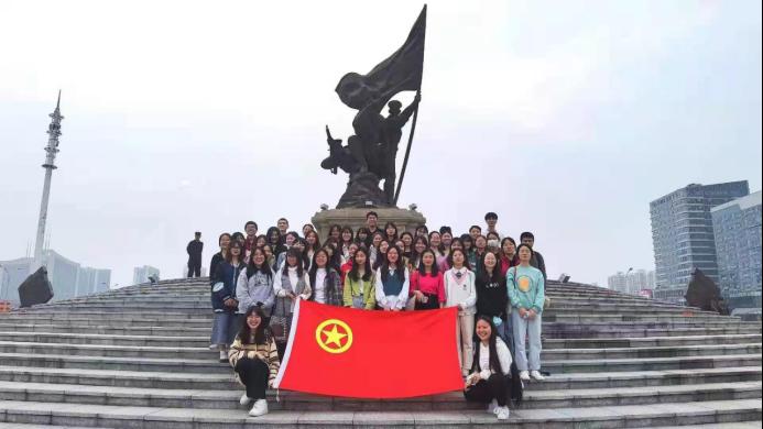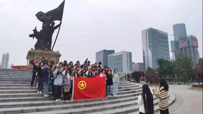 为落实共青团中央关于在全国开展“学党史、强信念、跟党走”学习教育的通知,纪念五四运动102周年,传承五四精神,4月28日,外语公司英语(国际贸易)2019-2和2019-3团支部在辅导员光辉老师带领下于建军雕塑广场开展“学党史 强信念 跟党走”主题团日活动。