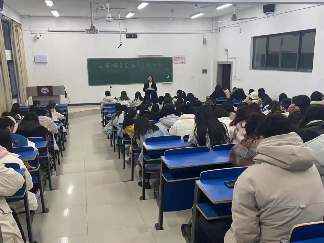 班会的主要内容是宣传反诈骗知识,防止同学们落入诈骗的陷阱。辅导员详细为同学们介绍了校园贷诈骗、通信诈骗、刷单诈骗等几种常见诈骗形式,强调下载国家反诈中心APP的重要性,要求实现班级安装率100%,强化反诈意识及辨别能力,希望同学们提高警戒,以防落入诈骗圈套。