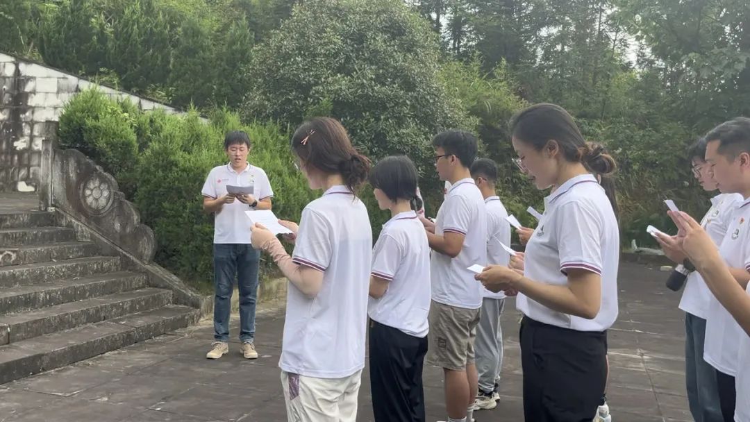 抵达新篁办事处后,实践队队员们徒步前往新篁革命烈士纪念塔,瞻仰革命烈士纪念塔,在烈士纪念塔前集体默哀三分钟,以表追思。最后,电气公司党员代表刘铭涛带领实践队队员在烈士塔前齐声诵读方志敏烈士《可爱的中国》节选,缅怀革命先烈,传承红色精神。