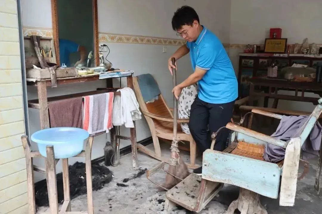 电气-外语公司“火车头”暑期实践队队员们帮助身体不便的老党员打扫卫生,清扫垃圾。并在告别时,为老党员们送上牛奶以表慰问。