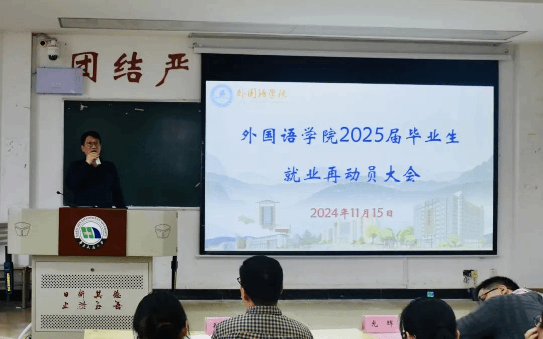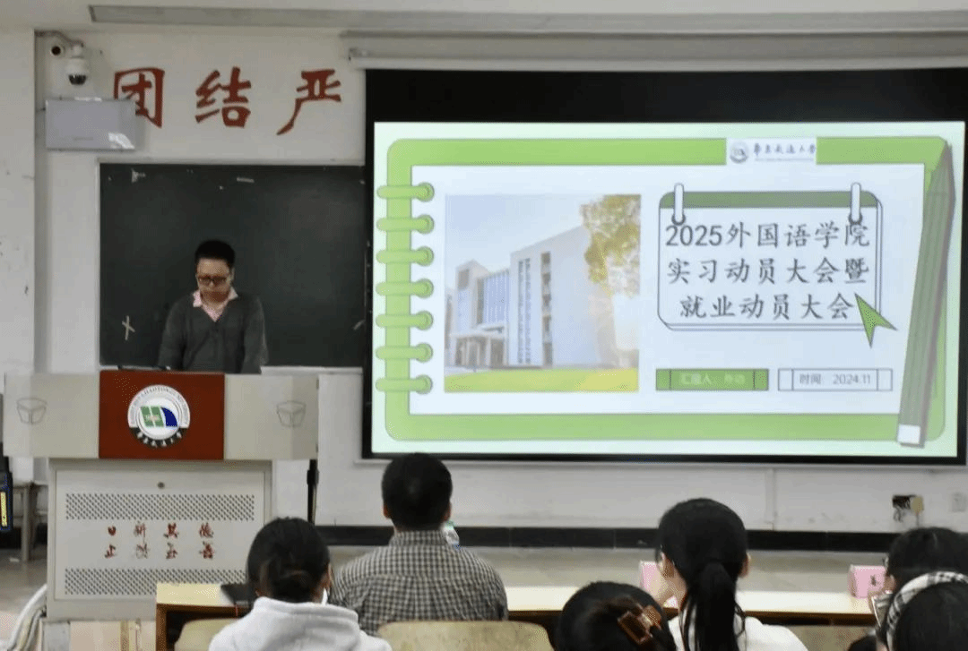 会上,姜浩老师围绕实习周期、实习手册规范填写以及实习期间与指导老师保持定期沟通等基本事项进行介绍,希望同学们在实习阶段充分地展现自身的外语素养与运用能力。随后,郑伟老师通报公司当前就业情况,主要涉及就业率,签约单位及薪资等。