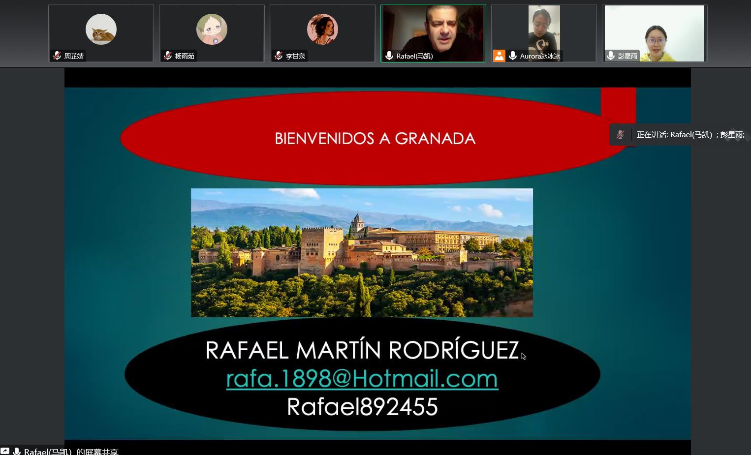 2022年11月27日,西班牙格拉纳达大学代表教师Martín Rodríguez Rafael 博士进行了格拉纳达大学申硕项目宣讲,旨在为有意向的同学提供有关西班牙硕士的信息。