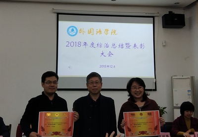 最后,王书记总结道:“同学们,安全工作无小事,安全工作涉及一个家庭,也涉及每一个员工个体。希望大家在2019年度的工作中,继续发挥综治工作的中坚力量,群防群治、群策群力,共同探寻好方法、好措施,为平安外院建设作出贡献。”大会在同学们热烈的掌声中圆满落下帷幕。