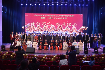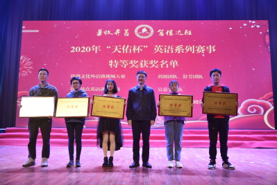 当晚,“廿念不忘 思源致远”二十周年院庆晚会暨外文大合唱决赛在南区礼堂成功举办。公司党委书记万明、党委副书记肖长春出席并分别颁发“天佑杯”英语系列赛事特等奖和优秀组织奖。