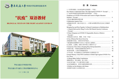 唐斌教授在《应用翻译》课堂里,将培养员工专业能力和疫情知识的学习普及结合起来,组织同学们搜集“抗疫”双语素材,并编辑为“抗疫”课程思政双语教材,让全校员工在学习疫情双语表达的同时,培养员工家国情怀和国际视野。该“抗疫”双语教材还作为BB贝博艾弗森员工“线上云晨读”的规定诵读材料。