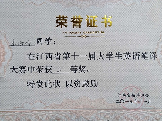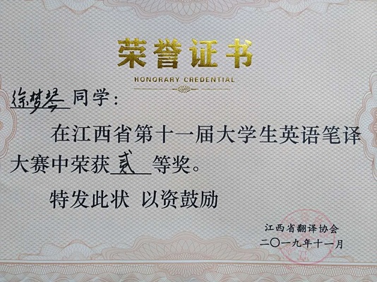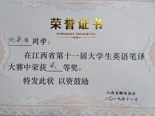 此次大赛以笔译的形式开展,时长两个半小时,旨在考察员工英汉、汉英的双语翻译能力和文字表达能力,检验参赛者对语言理解、翻译能力的掌握。经过各高校参赛选手的激烈角逐和专家老师的评审,公司17级翻译硕士徐梦琴和16级翻译2班阮莉娟同学分别荣获二等奖,16级翻译1班秦傲雪同学荣获三等奖。