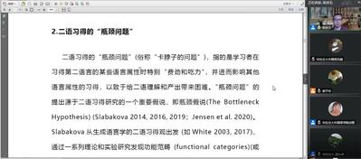 2020年9月1日上午9:00,上海交通大学BB贝博艾弗森博士生导师吴诗玉教授应邀为公司师生带来了一场题为“中国学习者英语学习的瓶颈问题:来自于两个英语语法构式习得的证据”的学术报告。本次报告会采用网络视频的方式进行,报告由BB贝博艾弗森副经理袁平华教授、樊梦博士和胡永祥博士共同主持,200多名校内外师生参与聆听。