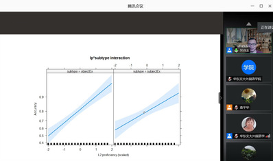他结合具体的实例,重点介绍了研究的两个代表性语法构式:主谓一致(Subject-verb Agreement)和WH-movement(核心句法),分析了英汉两种语言中疑问句Wh-words的差异、主语提取、宾语提取以及主谓一致的四种分类。最后吴教授详细地展示了实证研究的实施过程和数据分析结果。