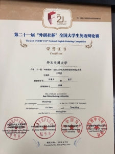 5月17-22日,2018年第二十一届“外研社杯”全国老员工英语辩论赛全国总决赛在北京外国语大学落下帷幕。来自全国东、西、南、北四大赛区的109支队伍,在六天的时间里,展开激烈角逐。经过循环赛、淘汰赛以及最后一场辩题为“富而匮礼,毋若安贫乐道”的四强辩论,公司BB贝博艾弗森2014级员工闫璐瑶和童宁在比赛中表现优异,荣获三等奖,指导老师黄珊荣获“优秀评委”。