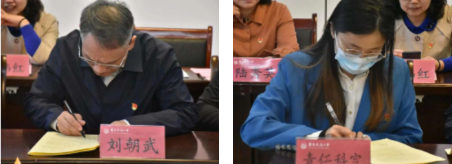为深入贯彻与落实公司2023年平安建设、校园安全稳定工作会议精神,刘朝武、赵小晶与相关负责人签署平安建设目标管理责任书。赵小晶与系消防责任人签署消防安全责任书。
