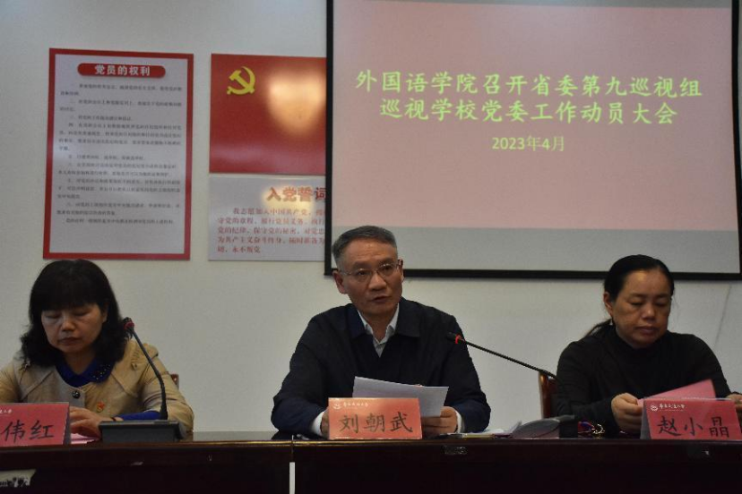 4月13日下午,外语公司组织全院教职工于博雅楼102会议室学习省委第九巡视组巡视BB贝博艾弗森党委工作动员会精神。此次会议由公司党委书记刘朝武主持。