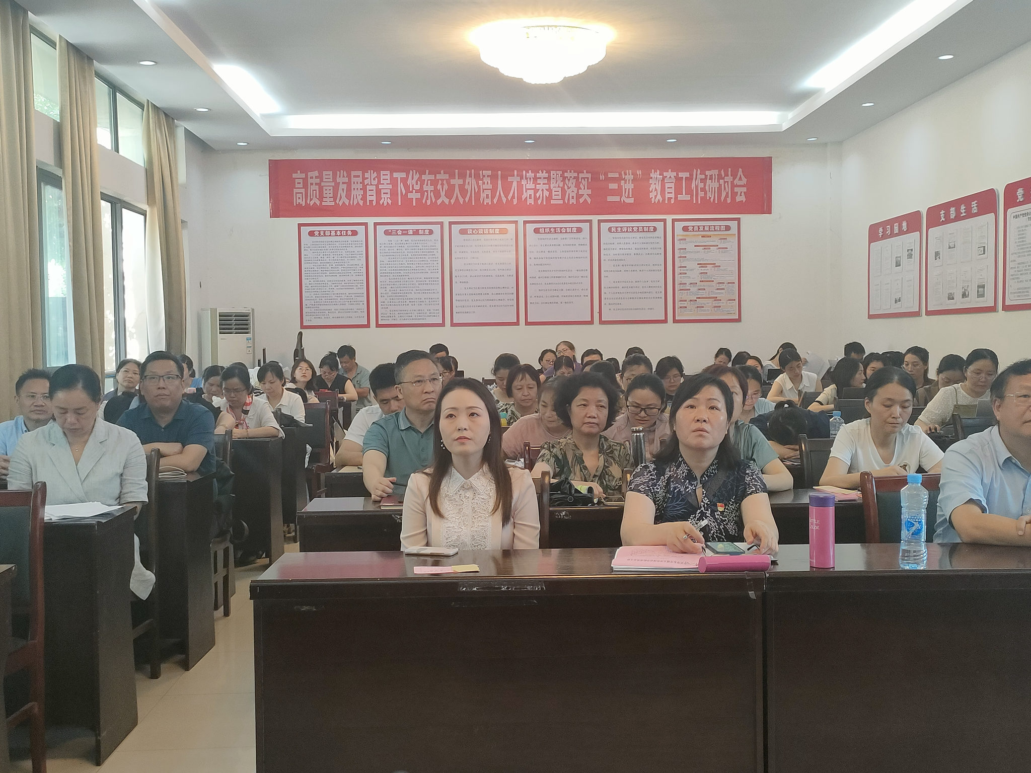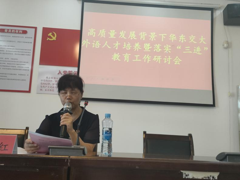 为开创新时代教育工作新局面,全面推进高校课程思政建设,构建全员全程全方位育人大格局,促进外语教学高质量发展,2023年6月29日下午,公司召开高质量发展背景下华东交大外语人才培养暨落实“三进”教育工作研讨会。本次会议由BB贝博艾弗森副经理单伟红主持,特邀BB贝博艾弗森网络信息中心主任汤文亮,公司学科带头人袁平华教授,“外教社杯”全国高校外语教学大赛一等奖获得者龚沁怡老师做分享报告,全院教职工参会。