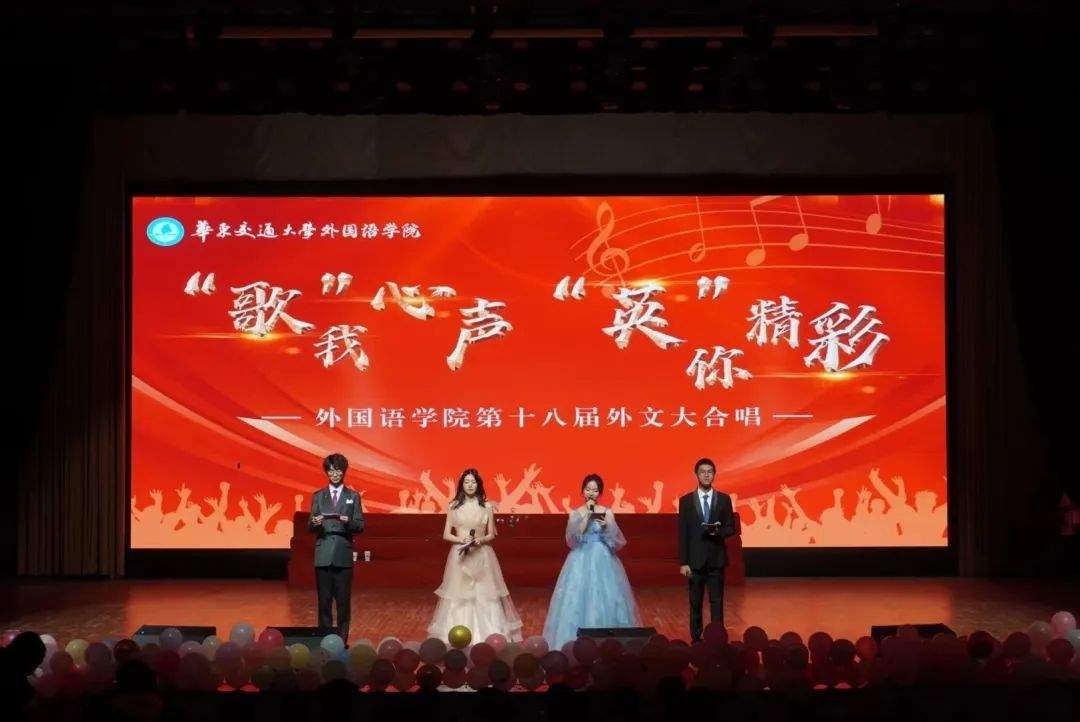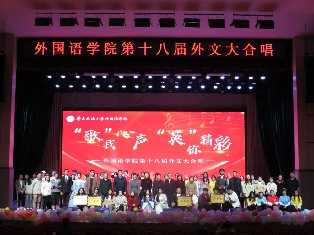 为进一步加强校园文化建设,丰富校园文化生活并增强员工的班级凝聚力和集体荣誉感,展现专业魅力,11月24日18:30,“‘歌’我心声,‘英’你精彩”第十八届外文大合唱比赛在南区礼堂展开。